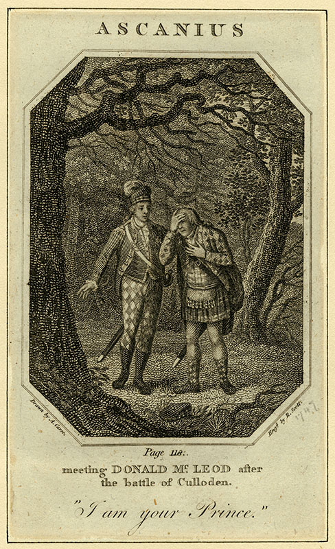 meeting Donald McLeod after the Battle of Culloden, 1746; (a) A Carse; (e) R Scott; (p) illustration for R Griffiths' Ascanius [p 118], Edinburgh; 1818; 9.5 x 7 cms.