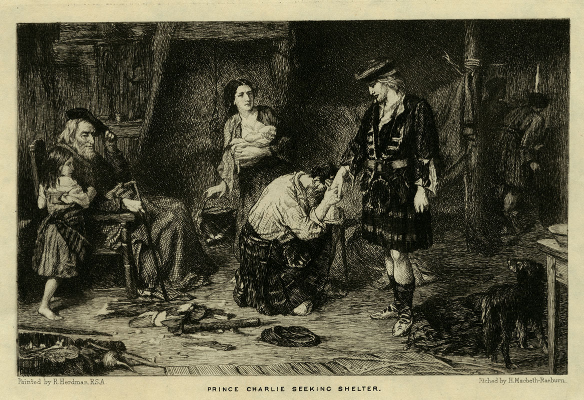 seeking shelter after the Battle of Culloden, 1746; (a) R Herdman; (e) H Macbeth-Raeburn; 9.4 x 14.5 cms.