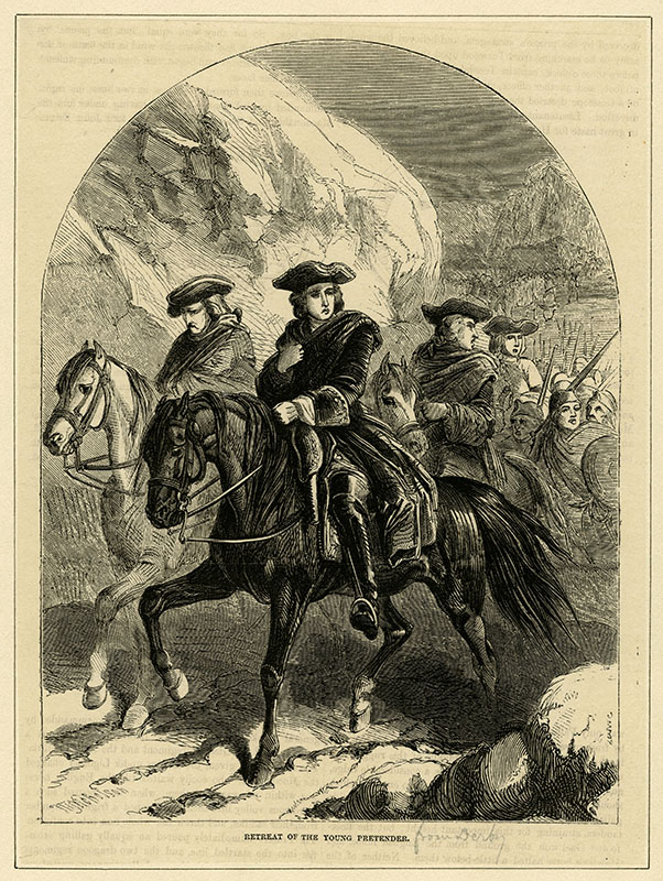 retreat from Derby, December 1745; (a,e) T H Nicholson; (p) Cassell's Illustrated History of England Vol IV [p 517], Cassell, Petter & Galpin; [1865-74]; 20 x 14.9 cms.