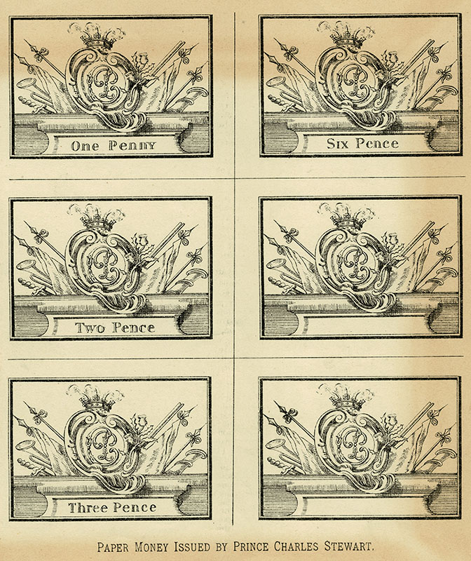 paper money issued by Charles Edward during his campaign; 16.2 x 14.5 cms.