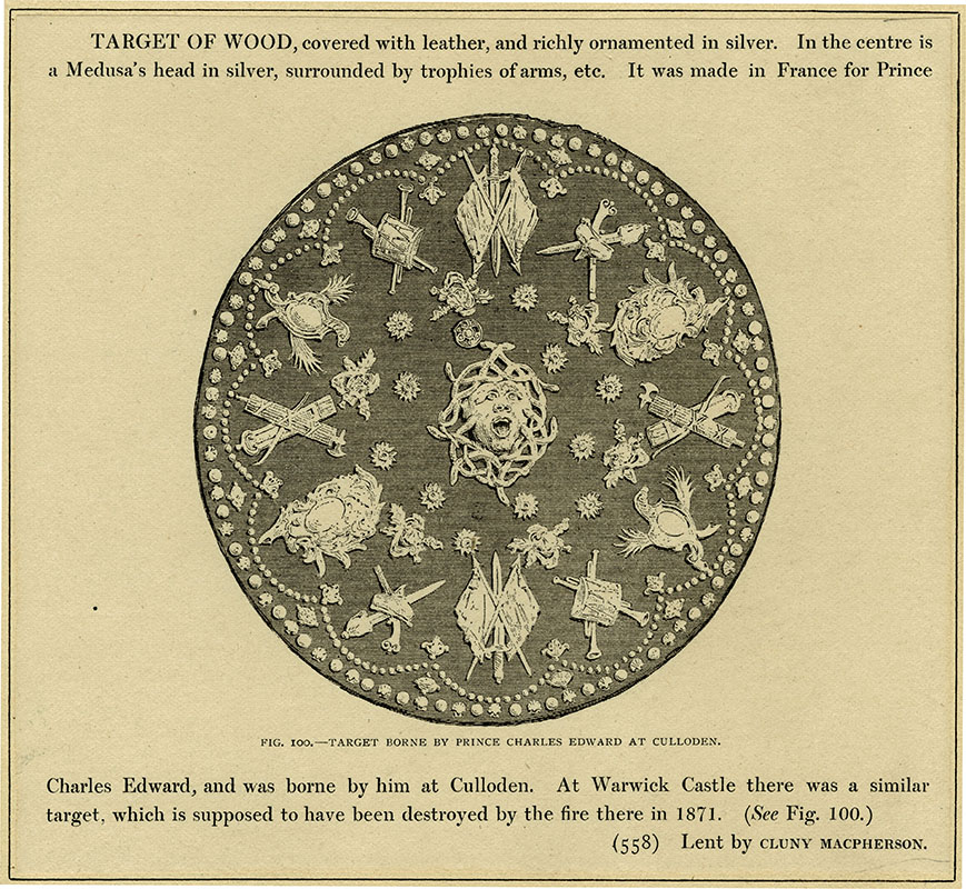 relics; target made in France and borne by him at Culloden, 16 April 1746; 9.8 x 9.4 cms.