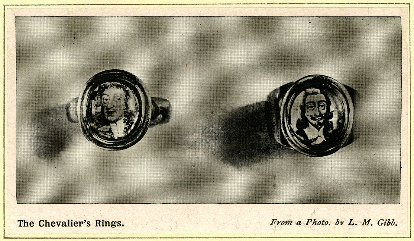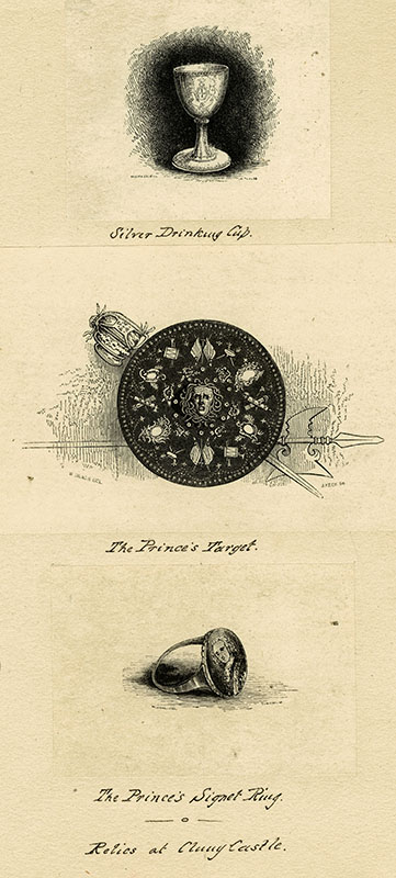 relics at Cluny Castle; (i) silver drinking cup; (a) W Dickes; (e) T W; (ii) target; (a) W Dickes; (e) J Keck; (iii) signet ring; (a) W Dickes; (e) T W; 21 x 10 cms.
