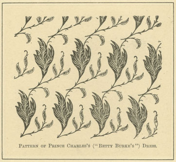 relics; pattern of his 'Betty Burke's' dress, worn when he escaped to Skye disguised as Flora Macdonald's fictitious maid, 28 June 1746; 7 x 7.5 cms.