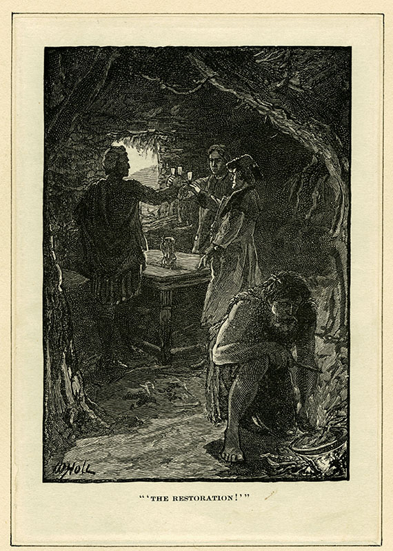 'The Restoration', toast being drunk to the desired result for the Jacobites at the beginning of Charles Edward's campaign, July 1745; (a) W Holl; 11.5 x 8.1 cms.