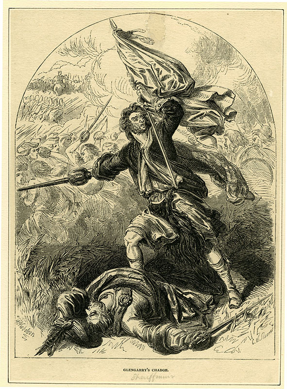 in which the Jacobites, under John, 6th Earl of Mar, fought the pro-Hanoverian force under John, 2nd Duke of Argyll; MacDonell of Glengarry leading the Highland charge at the start of the Battle; (a) T H Nicholson; (e) C W Sheeres; 20 x 15 cms.