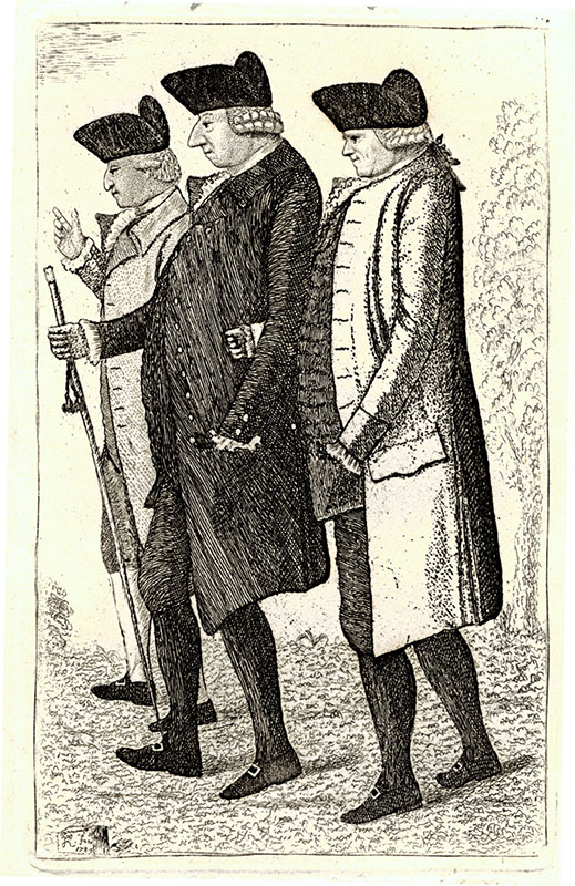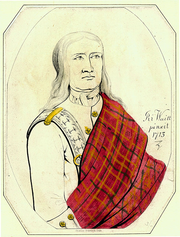 Jacobite, fought at Prestonpans, one of Prince Charles Edward's life guards at Culloden; DNB; Grant is represented to the right of Allan Macdougall of Gallanach and Alexander of Glenturkie; (a) J Kay; (e) J Kay; CEBP Groups; 9.7 x 6 cms.