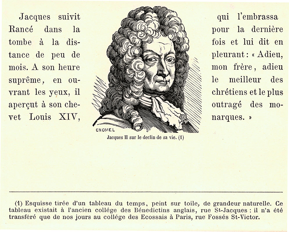 with account of Louis XIV's farewell visit to James on his death-bed; (e) Chomel; 5.7 x 5 cms.
