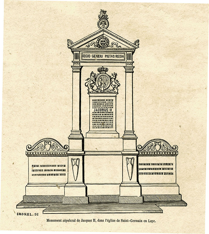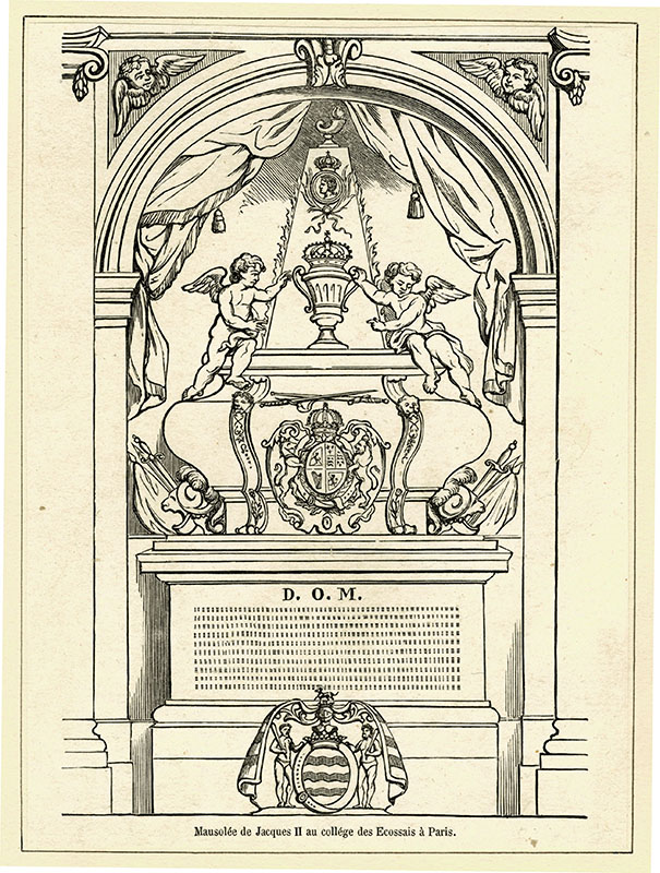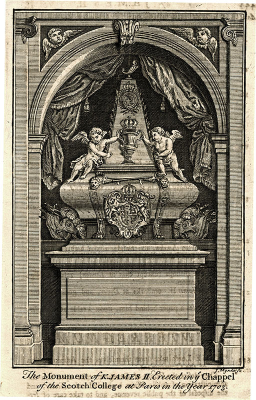 the funerary monument in the Scots' College in Paris, erected 1703; (a) Garnier; (e) J Mynde; 15.2 x 9.8 cms.