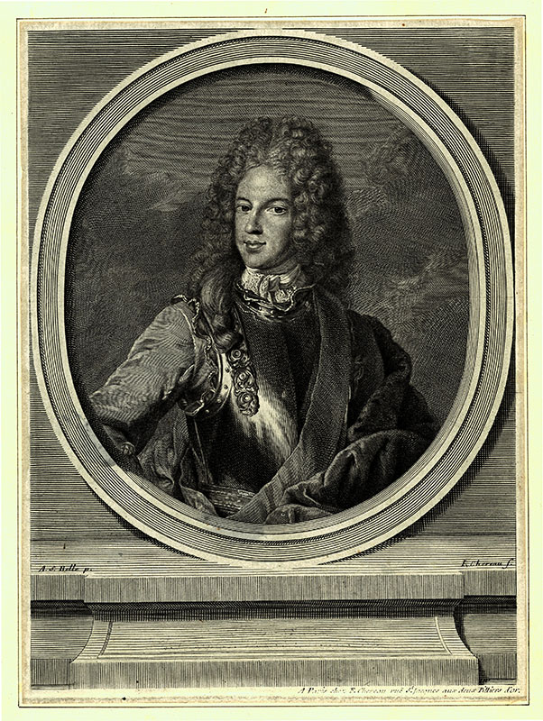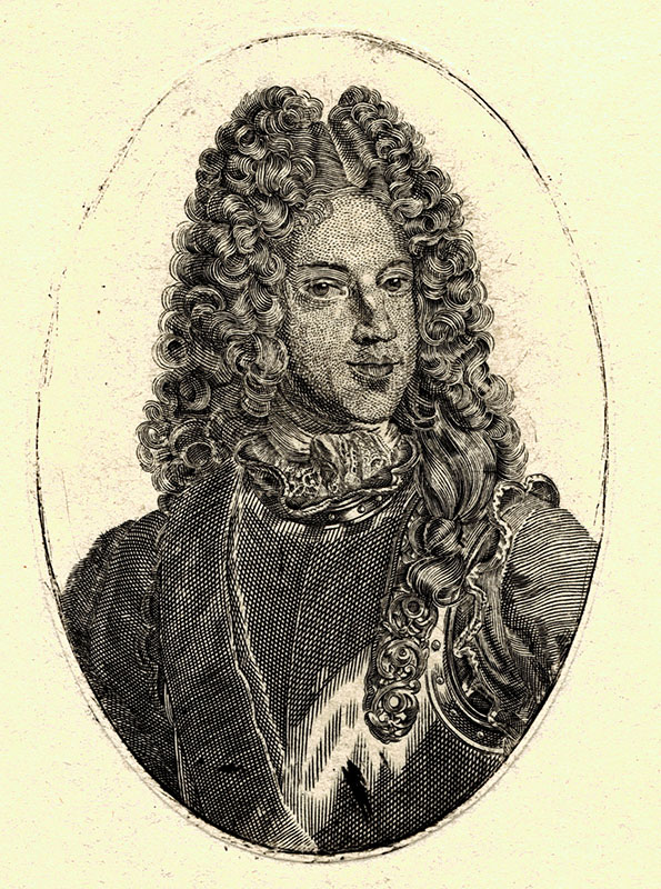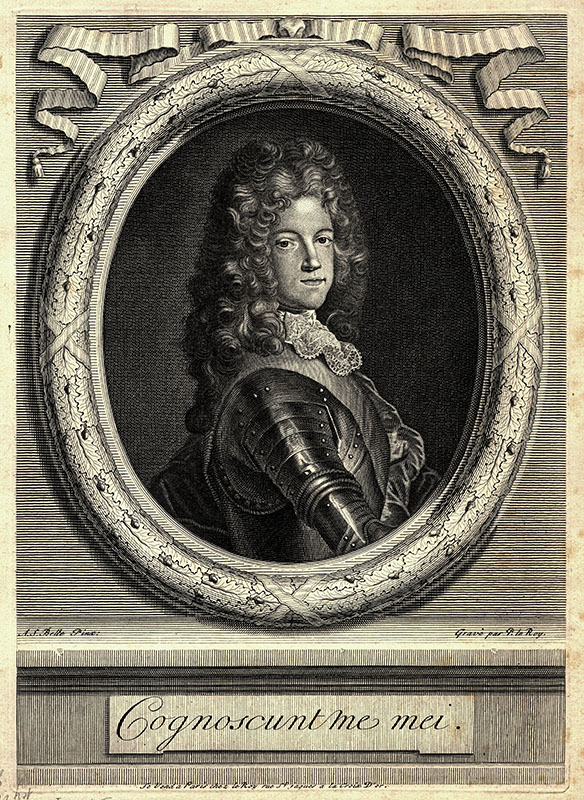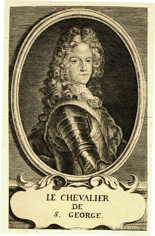 (a) A S Belle; (p) frontispiece to Memoires du Chevalier de St George, Cologne; 1713; 12.6 x 7.8 cms.