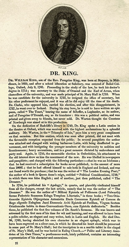 principal of St. Mary Hall, Oxford, Jacobite; with page of biography from Bell's Poets; (e) W Holl; 19.8 x 9.6 cms.