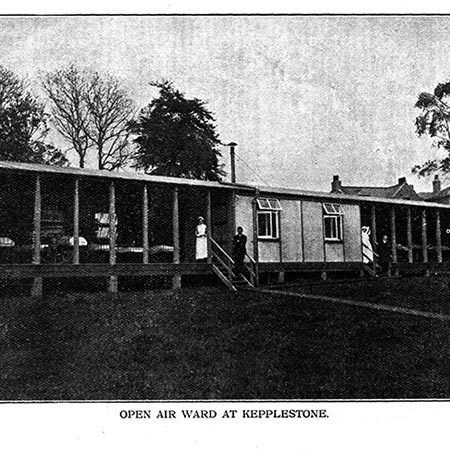 The Royal Aberdeen Hospital for Sick Children's Hospital, then on Castle Terrace, decided to make a temporary move to Kepplestone House, fearing that proximity to the harbour exposed the hospital to risk of naval bombardment. The hospital directors, who already had outline plans for a new hospital, took the opportunity of the ground available at Kepplestone to try out a new kind of ward - a 26-bed open air ward. Although the ward was open to the fresh air on two sides, the hospital's annual report assured the public that “with plenty of blankets and hot water bottles it is quite possible to keep the children warm even in the most bitter weather”. It was noted too that wounds healed more quickly and readily here than in the closed wards.