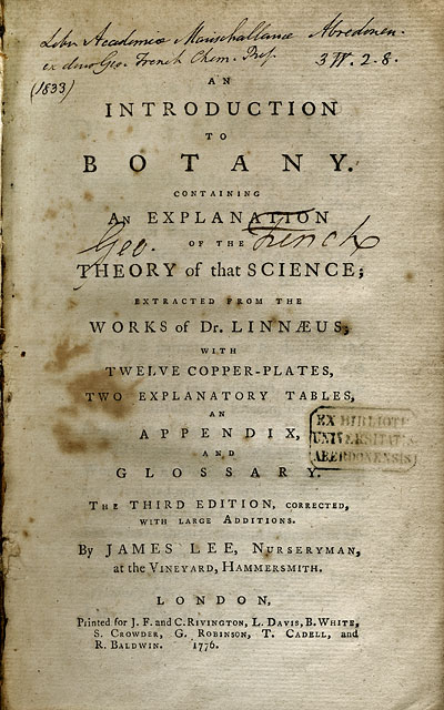 - Liber Academiae Marischallanae Abredon. Ex dono Geo French Chem. Prof. (1833) Geo. French.