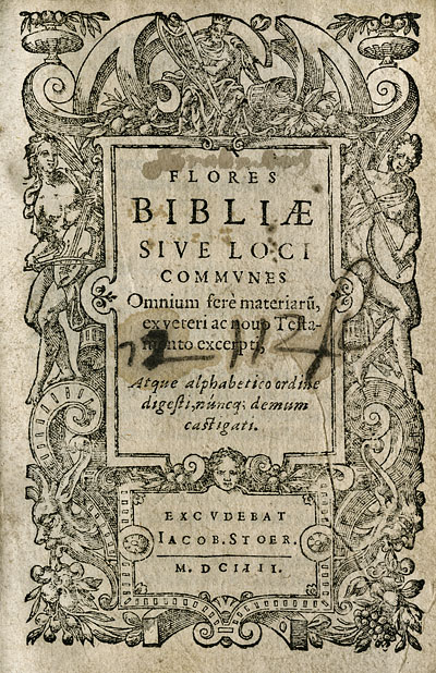 Flores Bibliae sive Loci communes omnium feré materiarum, ex Veteri ac Novo Testamento excerpti, atque alphabetico ordine digesti, núncque demum castigati