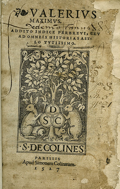 Valerius Maximus. Addito indice perbrevi, ceu ad omneis [sic] historias asylo tutissimo.