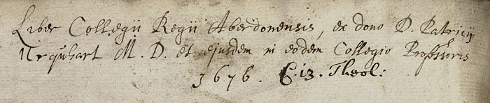- Mediciner, King's Coll., 1672-1725. Began public lessons 1686. Rector, King's Coll., 1688. Died aged 84, 1725, after 54 years as mediciner. Family from Meldrum, his maternal grandfather was the Earl of Airly.