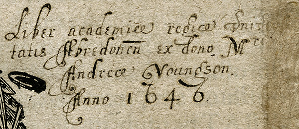 - Born 13th July, 1619. Son of Mr Alexander Youngson, minister, Durris. Matriculated at Marischal Coll., 1635. Graduated and became regent there, probably in 1642, on the retirement of William Blackhall. Elected regent at King's Coll., 1644, where he remained until 1646. "He afterwards joined the Roman Catholic Church, became a member of the Society of Jesus, and taught in the Scots College, Madrid." - Bibliog. Aberd. Died 1679.
