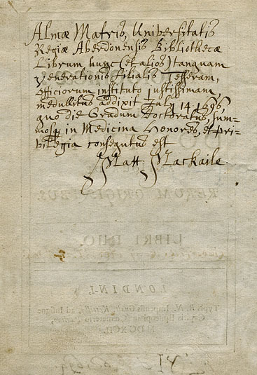 - Apothecary and physician in Edinburgh, where he achieved the status of burgess and guildbrother on 11 November 1658. During the previous year he had spent some time at the instigation of James Sharp, the future archbishop of St Andrews, in London, where he wrote a number of papers on matters of religion and the church. Mackail then moved to Aberdeen, where he practised medicine, and obtained the degree of MD from King's College on 14 July 1696. Mackail was a prolific author on medical and scientific matters. The poll tax records for 1696 reveal him as living in Aberdeen with his wife and son. A portrait of Mackail is in the possession of Marischal College. The date of Mackail's death is unknown.--D.N.B.