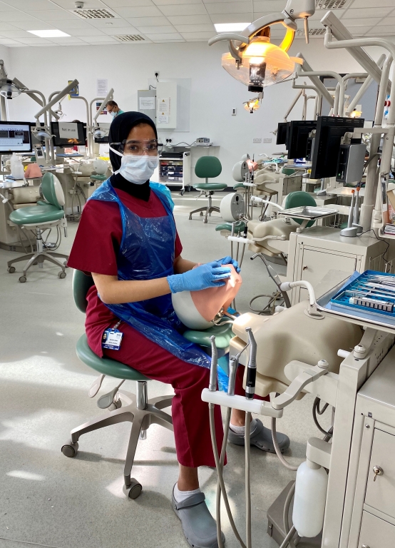 We then welcomed back our final year BDS Dentistry students to campus where they undertook an intensive clinical skills revision programme. Final year student Raidah Azam commented, “Like most courses, ours is being taught in a blended learning format. However, as the course is so hands on, most of the clinical teaching has to be done in person, particularly in final year. With lots of new changes and added protocols, the staff have been really understanding and helpful with the challenges of transitioning back to face to face teaching. We have started a 3 week long intense clinical skills remediation course to refresh our skills and have all been mask fitted so we can start treating patients again in the coming few weeks which we’re all really excited for. Although the future still remains uncertain, the staff are doing everything they can to ensure we are ready to start our foundation training jobs later in the year. For now, it is great to return to some level of normality and hopefully be one step closer to graduating!”