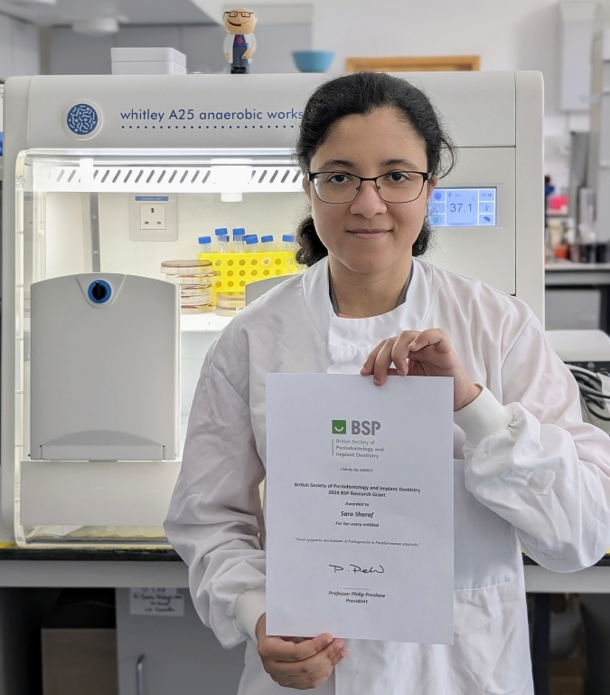 Speaking about this amazing achievement, she told us more about her project and how this funding will help her research: “The mouth harbours a delicately balanced bacterial community. When disrupted, this balance can shift from harmless commensals to harmful pathogens. In the case of Porphyromonas gingivalis, this shift leads to inflammation and eventual destruction of the tooth's supporting structures. If left untreated, it can even contribute to other systemic complications. Bacteria possess a unique defence system called the Type-1 Restriction Modification System (Type-1 RMS) that helps them fight off invading viruses by recognising and cutting their foreign DNA. Interestingly, recent research suggests that Type-1 RMS plays additional roles in regulating factors that influence a bacterium's disease-causing potential. My project aims to be the first to investigate the role of Type-1 RMS in P. gingivalis' ability to cause disease. By understanding how this bacterium transitions from harmless to harmful, we can develop better treatments for periodontitis and improve prevention of related medical conditions." "The British Society of Periodontology has contributed a sum of £5000 to this project, the funding will go towards identifying the different alleles of Type-1 RMS through quantification via capillary electrophoresis and acquiring reagents for phenotypic assays to determine the invasive and evasive capacity of these strains of P. Gingivalis.” We would like to extend our congratulations to Sara and best of luck with her project!