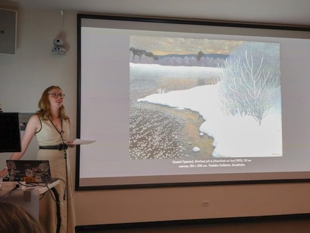 Last week, Dr Isabelle Gapp (Art History) was invited by Bowdoin College Museum of Art in Maine to speak about the Swedish artist Anna Boberg. She spent the day visiting faculty and students, as well as the BCMA and Peary-MacMillan Arctic Museum, before giving an evening guest lecture. Her visit was covered by the student newspaper, The Bowdoin Orient.
