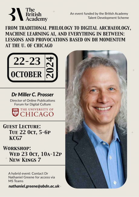 This workshop builds on themes from the lecture and demonstrates practical approaches to computational research in the digital humanities. Dr. Miller C. Prosser will demonstrate various tools and methods for recording, integrating, analyzing, and publishing digital research data using the Online Cultural and Historical Research Environment (OCHRE) and will illustrate how this research platform plays a central role in various research projects and campus initiatives at the University of Chicago. Topics include paleography and epigraphy, integration of archaeological data, digital texts and dictionaries, social network analysis, library digital collections management, and digital publication
