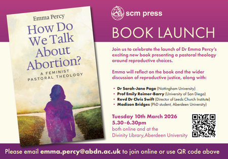 Join us to celebrate the launch of Dr Emma Percy’s exciting new book presenting a pastoral theology around reproductive choices. Emma will reflect on the book and the wider discussion of reproductive justice, along with: • Dr Sarah-Jane Page (Nottingham University) • Prof Emily Reimer-Barry (University of San Diego) • Revd Dr Chris Swift (Director of Leeds Church Institute) • Madison Bridges (PhD student, Aberdeen University)