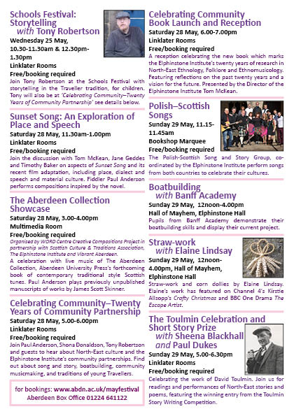 The Elphinstone Institute is hosting a number of events over the May Festival weekend at the University of Aberdeen, 27-29 May 2016.