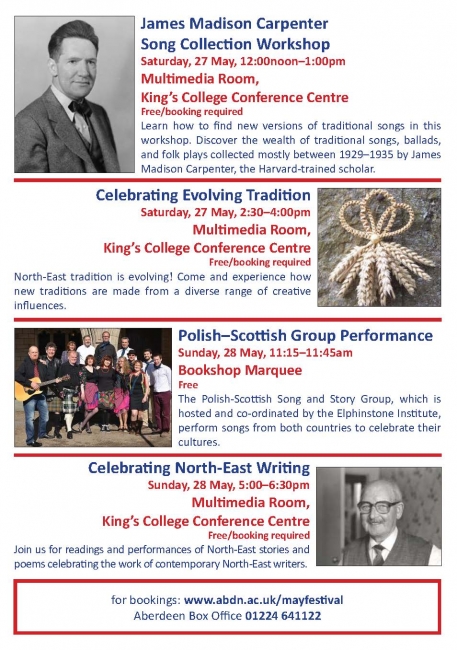 The Elphinstone Institute is hosting a number of events over the May Festival weekend at the University of Aberdeen, 26-28 May 2017.