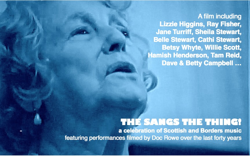 Doc will be screening his film The Sangs the Thing!, a celebration of Scottish and Borders music featuring performances filmed by Doc Rowe over the last forty years. Singers in the iflm include Lizzie Higgins, Ray Fisher, Jane Turriff, Sheila Stewart, Belle Stewart, Cathi Stewart, Betsy Whyte, Willie Scott, Hamish Henderson, Tam Reid, Dave and Betty Campbell, and many others.