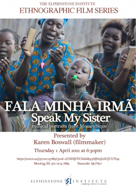 Speak My Sister is a web documentary based around a series of six musical portraits of Mozambican women who draw on their creative voice to bring about social change. For the Elphinstone Institute Ethnographic Film Series, film maker Karen Boswall will be presenting and discussing material from these films. The six portraits were researched, filmed and edited by film, media and cultural studies students from the Higher Institute of Art and Culture in Mozambique’s capital Maputo. They offer a Mozambican reflection on the role of women in forming Mozambican cultural identity and contributing to sustainable development in the country. Expressed through personal testimony, poetry, music and dance, the films go behind the traditional Mozambican dance forms of Tufo, Xingomana and Xigubu and the contemporary popular genres of Pop fusion, Gospel and Hip-Hop. In addition to these portraits there are also short films from behind the scenes shot during her practice-led doctoral research where she supported the production and exhibition of the films.
