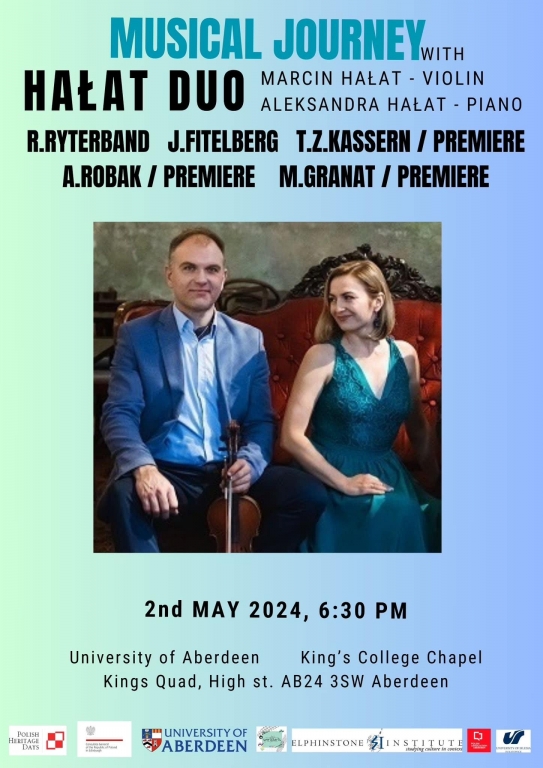 Hałat Duo are the supremely talented musicians Aleksandra Hałat (piano) and Marcin Hałat (violin). Inside the ancient and beautiful walls of King’s College Chapel, they will perform the music of Polish composers R. Ryterband, J. Fitelberg, T. Z. Kassern, A. Robak, and M. Granat, with some pieces having their premiere on the evening. We are thrilled to support Polish Association Aberdeen in its efforts to show off Polish culture in all its guises across the Granite City.