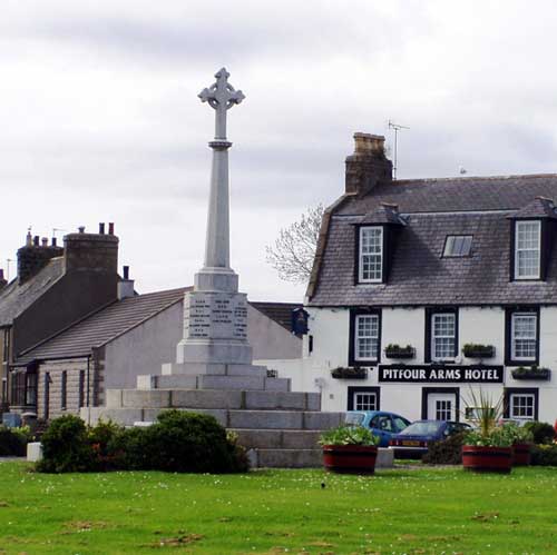 A ring cross war memorial, unsympathetic planners have turned the, lozenge shaped 19th century square, into a large roundabout. A roundabout such as one would expect to find on a town bypass not in the centre of a village. The memorial is isolated in the middle of this roundabout and any close inspection requires a hazardous road crossing.