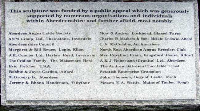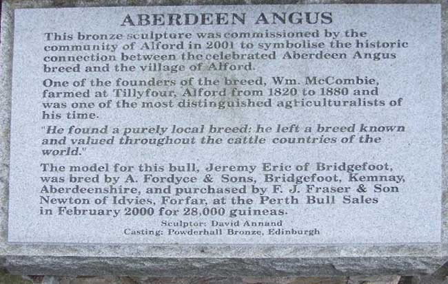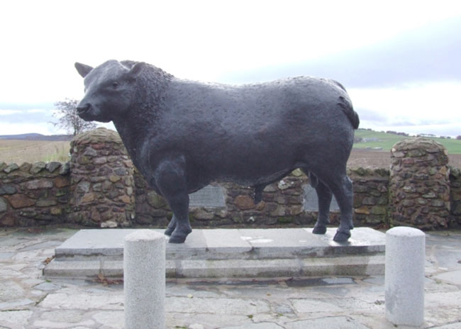 This bronze sculpture was commissioned by the community of Alford in 2001 to symbolise the historic connection between the the celebrated Aberdeen Angus breed and the village of Alford.