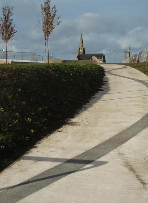 The Walking Way is the second of two artist-led interventions in the north east harbour town that have been designed to enhance the pedestrian route between the town centre and its waterfront. Work by landscape artist Julia Barton to brighten up the main shopping area was implemented in early summer 2007.