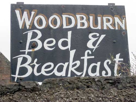 Painted metal Bed and Breakfast sign using a lettering style reminiscent of mid-20th century trade signs.
