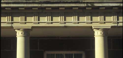 Late 18th century and circa 1830, converted to flats in 1998. 2-storey and attic, 7-bay, L-plan former coaching inn converted to flatted dwellings late 20th century, with hexastyle colonnade. Red sandstone ashlar with coursed squared rubble to sides, squared and snecked rubble and some harl to rear. Cornice and blocking course.