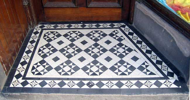A well preserved example of a late 19th or early 20th century black and white mosaic shop entrance
