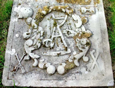 - Dunnottar Cemetery Stonehaven, Headstone with Tools