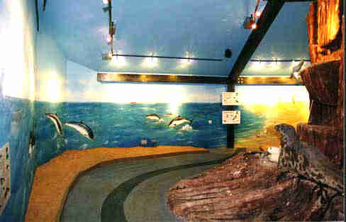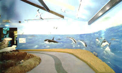 Marine aquarium murals, commissioned by Aberdeenshire Council. Murals depicting the wildlife living in and arround the Moray Firth. Painted in a fairly naturalistic, slightly simplified style, typical of popular visitor attractions of the 1990's.