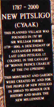 This monument and garden were created by, and for the people of New Pitsligo in 2000 A.D. to honour our history and mark the new millennium."