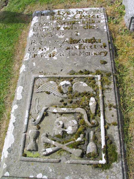 Inscription reads: Here Lies interrd the Body of Peter Clyne Farmer in Bracklamore who died May 3d 1722 Peter & Alexander his Sons erected this stone to his Memory.