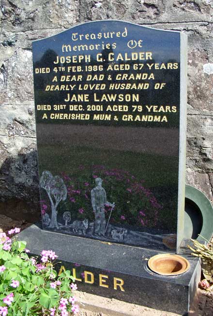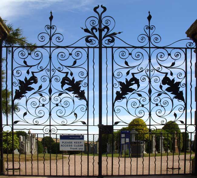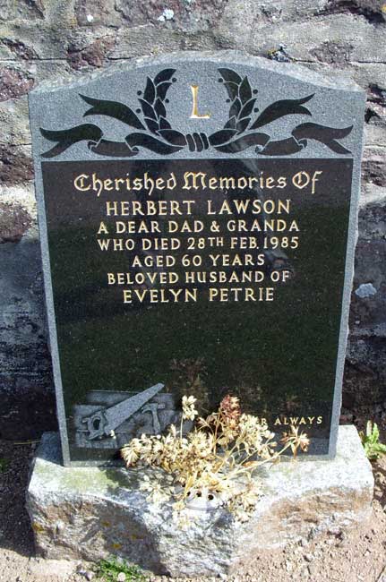 Large municipal cemetery on the outskirts of Stonehaven opened in 1902 to serve the increasing population of the area. There are about 1600 gravestones within Fetteresso New, the majority of which are constructed from local granite, the three illustrated are however later 20th century (80s and 90s) stones of imported black granite. They are of interest in showing a modern take on visual iconography, two of them illustrating occupations as do the gravestones of earlier times from some older graveyards. The grounds were extended to the north-west in the late 20th century with a new entry gate constructed for easy access.