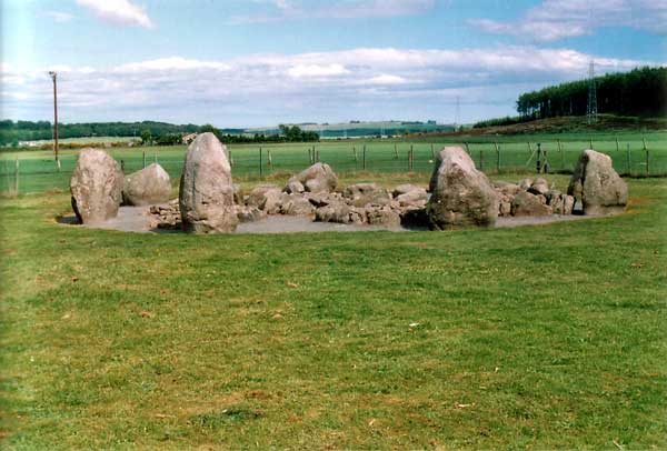 3 miles ESE of Echt. Turn south off B9119 Aberdeen/Tarland road at Garlogie, in 250m fork left; circle lies on left of road in 1km