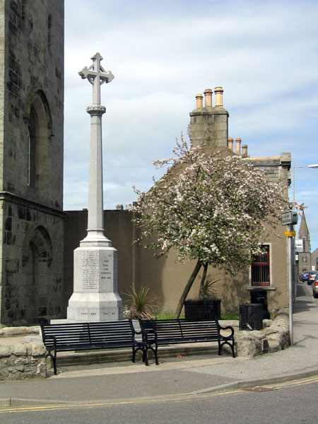 Strichen war memorial is a tall six-sided column surmounted by a decorated cross on a foliated plinth. It stands on a six-sided solid base in a two-step base. It commemorates the dead from both world War I & II. It was unveiled on August 25, 1920.