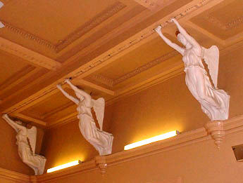 Interior of Banff town hall, Coffered Ceiling Supported by 6 Pairs of Female Figures Clasping Laurel Leaf