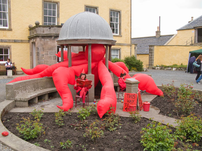 The same artists lead a workshop on the Sunday. "Build A City" workshop organised by COAST. A soggy but sunny day in the MacDuff fishmarket building the sky to float above the city that featured the COOL Hotel, flying dragons, potatoes and hot air balloons. see http://pesterandrossi.wordpress.com/category/coast-festival-2010/