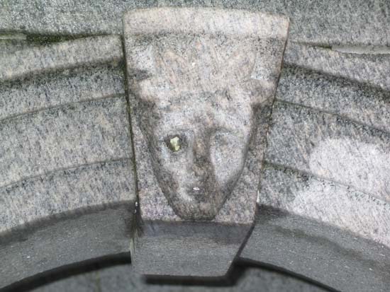 Erected 'in memory of James Robertson, Bank Agent, Huntly, b.20 January 1789, d.4 February 1877, by his widow', the fountain consists of a square bullfaced granite plinth which carries on each side a polished granite basin and which supports four polished granite colonnettes enclosing keystone arches. Moulded crown above all: trying much too hard.