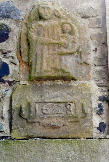 2 Panels depicting Virgin and Child, first datestone 1628, second much weathered possibly pre 1600's.