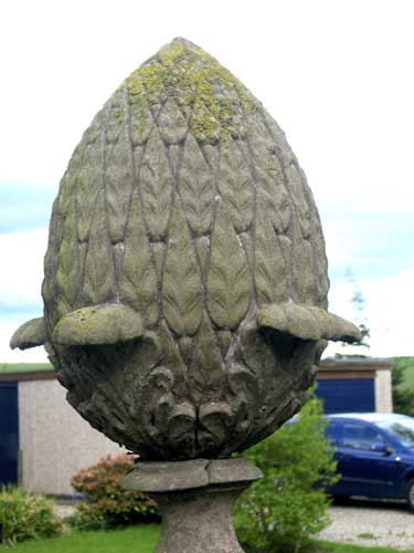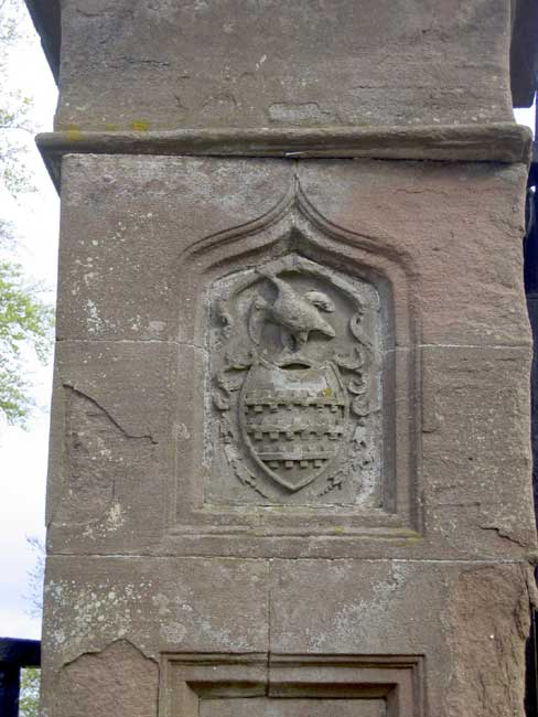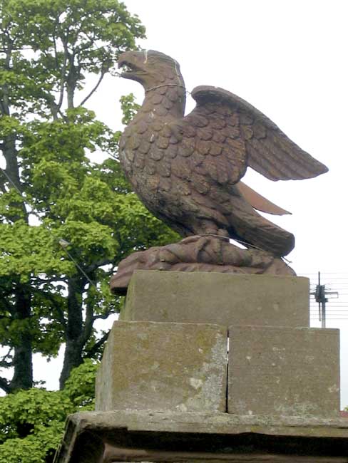Probably early 19th century. Four ashlar piers, inner piers with eagle finials, outer pair with acorns (according to LBR but they look more like cones to me). category c listed. piers also bear armorial decorations.