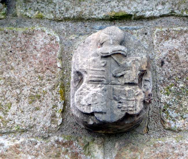 In the churchyard the original rubble masonry of the medieval church remains, though obscured by modern pointing, on either side of the Tolquhon monument which was built in 1589.